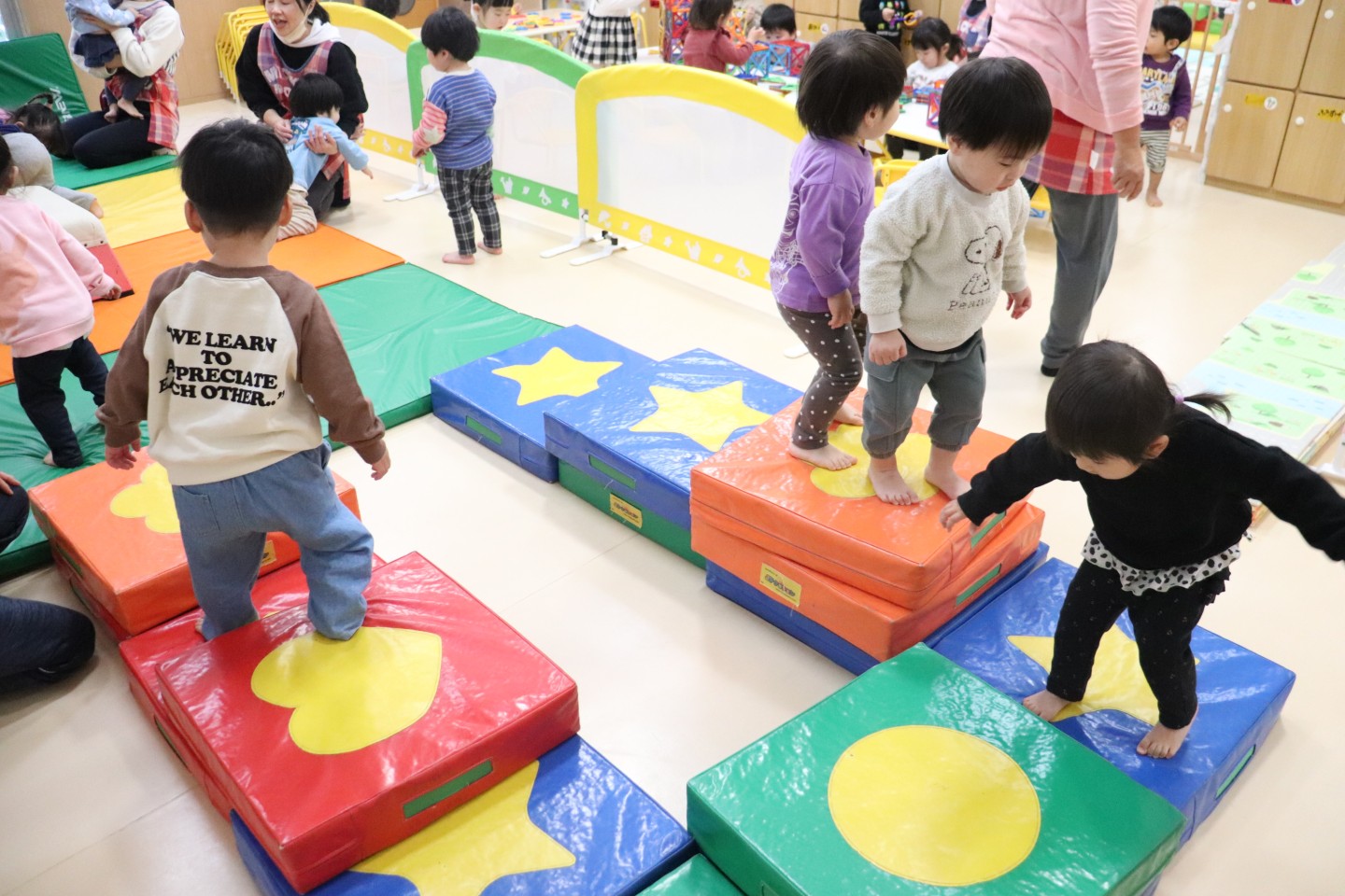平均台を進んで、お友だちと手を繋ぎました☆彡